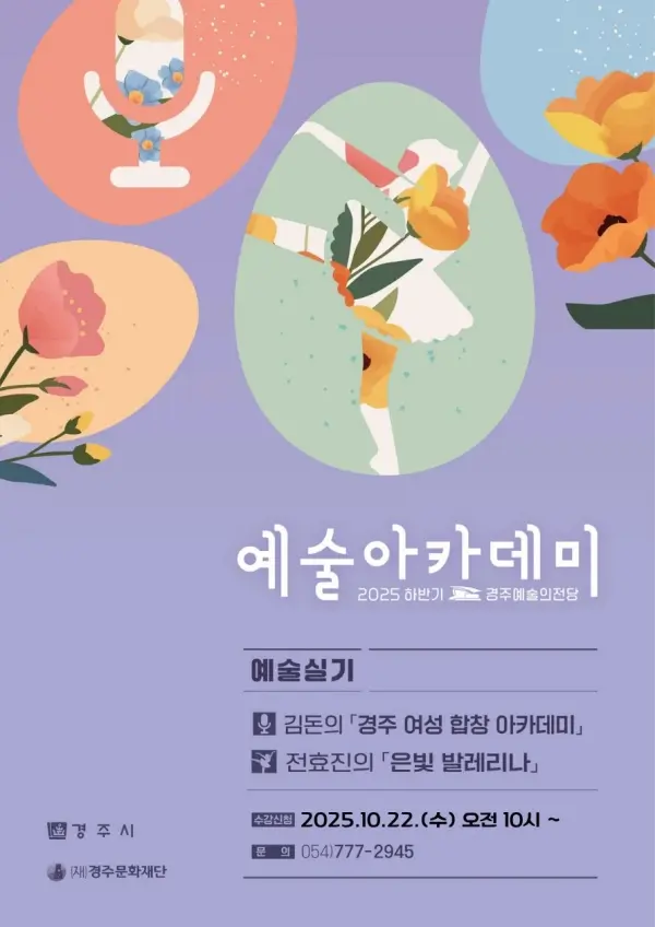 (재)경주문화재단은 “2025 경주예술의전당 예술아카데미”의 추가 운영을 앞두고 10월 22일 오전 10시부터 두 개의 실기 강좌 수강생을 모집한다고 밝혔다. 이번 프로그램은 11월 5일 개강한다.